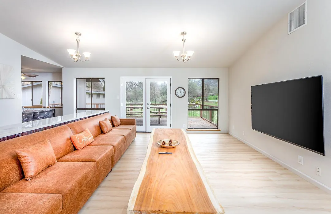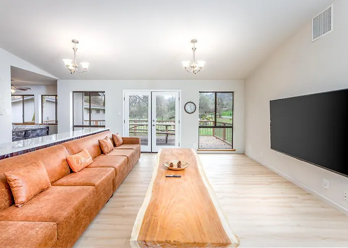 Situata a soli 3 km da Sequoia Parks Conservancy, la villa Grand Riverside Retreat - Private Walkway To The River Three Rivers offre un patio con vista sulle montagne.